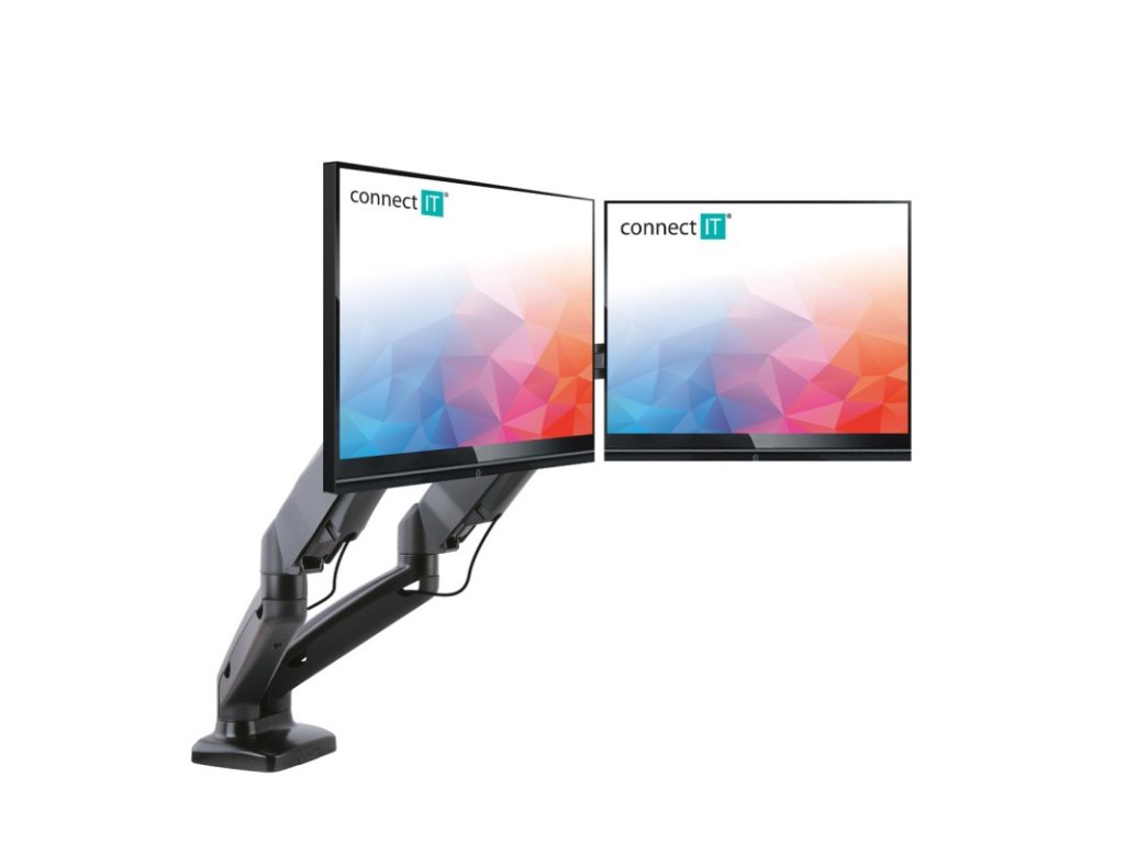 Univerzálne držiaky monitorov značky CONNECT IT sa vďaka svojej povestnej kvalite a šírke ponuky radia medzi súčasnú špičku v obore. Záruka na vybrané modely je 30 rokov. Vyznačujú sa kvalitnými materiálmi, precíznym dielenským spracovaním a jednoduchou montážou. Nestretnete sa u nich s vôľou v kĺboch ani nepríjemným vŕzaním. Všetky TV držiaky sú testované na trojnásobok uvádzanej nosnosti. Maximálna variabilita vďaka 6 pohyblivým kĺbom pre každý monitor (celkom 12 pohyblivých kĺbov) Špeciálny systém pružinového paralelogramu umožňuje nezávislé nastavenie monitorov do akejkoľvek polohy bez použitia náradia a bez akéhokoľvek uťahovania (stačí iba rukou zmeniť pozíciu monitora a ten sa vďaka špeciálnej pružine vo vnútri držiaka sám zafixuje v danej polohe)