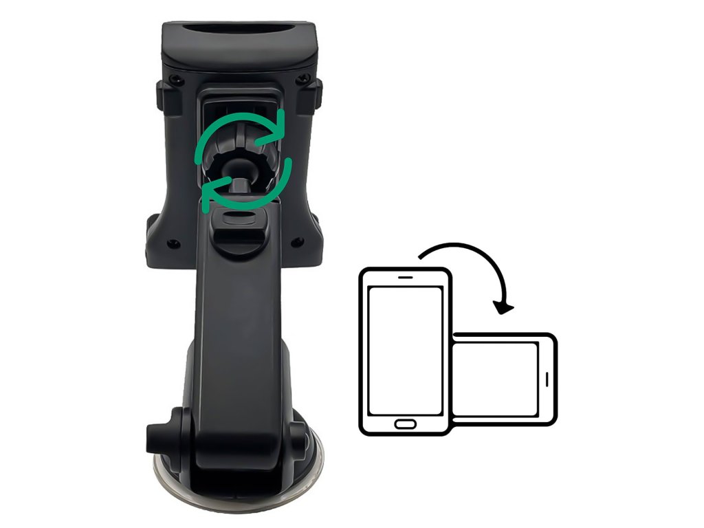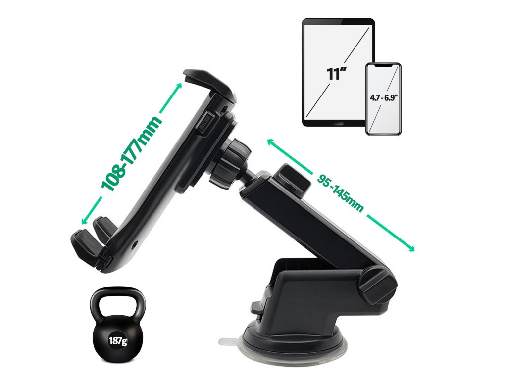 Stojan funguje s väčšinou zariadení dostupných na trhu (preferovaná veľkosť od 4,7 do 11 palcov ). Silná prísavka umožňuje pripevniť držiak na palubnú dosku alebo čelné sklo.