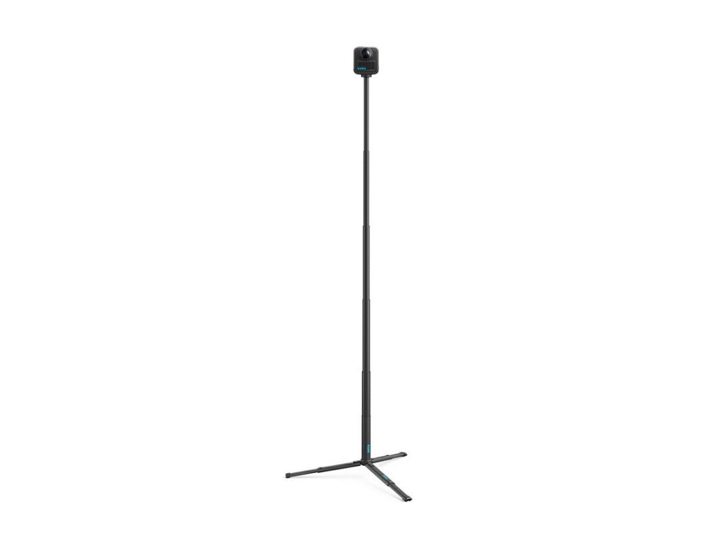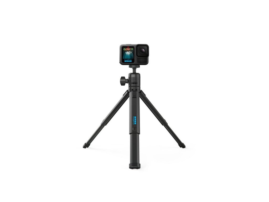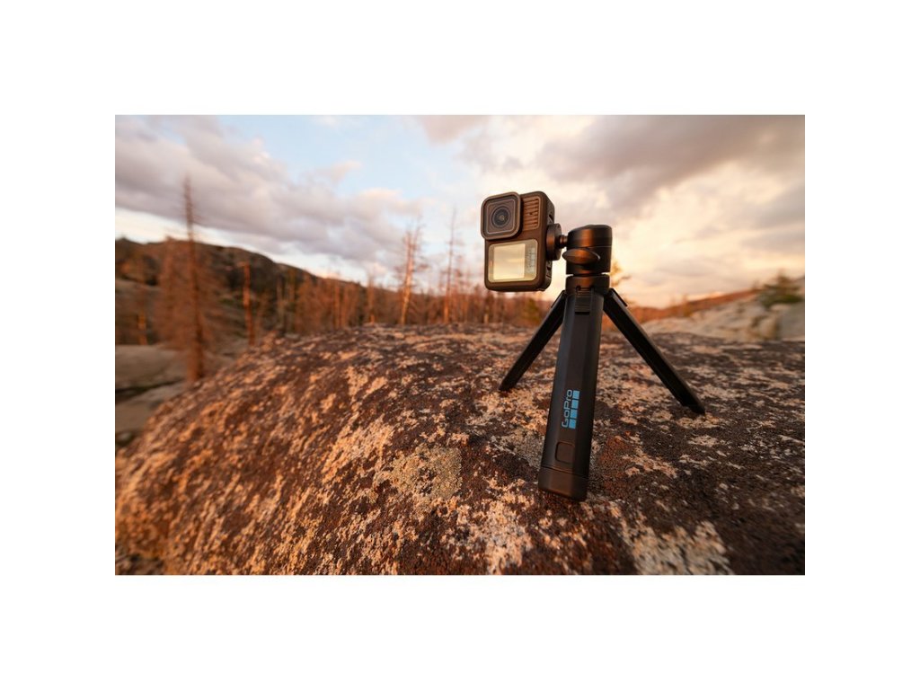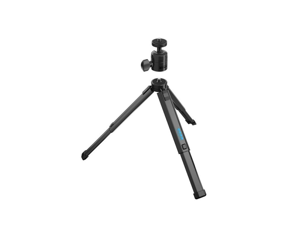 Tento neskutočne všestranný tripod je navrhnutý tak, aby poskytol tvojej kamere pevnú základňu na akom povrchu - od dokonale rovného až po rozoklané skaly. Jeho nohy je možné zamknúť v akéhokoľvek uhla, vysunúť alebo položiť naplocho - jednoducho nastaviť tak, aby si mohol urobiť perfektný záber - a to aj z piesku alebo vody. Je vybavený guľovou hlavou, ktorá sa otáča o celých 360 ° a nakláňa až o 90°, čo ti pomôže zaistiť najlepší uhol záberu. K tripodu je tiež možné pripojiť kompatibilnú predlžovaciu tyč so statitvovým závitom pre zaobstaranie 360° záberov bez viditeľnej tyče.