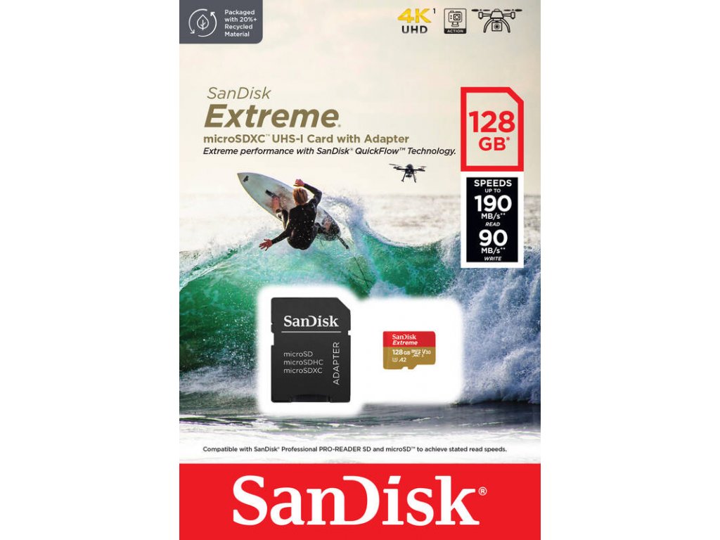 Pamäťová karta SDXC Extreme od spoločnosti SanDisk je výbornou voľbou pre všetkých milovníkov fotografovania a natáčania videí. S rýchlosťou čítania až 190 MB/s a zápisom 90 MB/s môžete priamo na kartu natáčať videá v špičkovej 4K UHD kvalite, alebo zhotovovať ostré snímky plné nádherných farieb a dychvyrážajúcich detailov. Takto vysoké rýchlosti príslušenstva dosahuje s pomocou moderných a pokročilých tried UHS-I, U3 v kombinácii so špeciálnou technológiou QuickFlow.