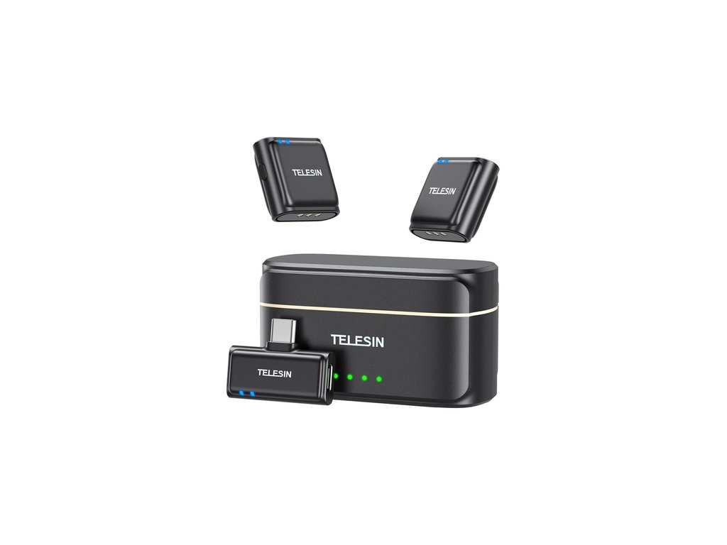 Sada značky TELESIN obsahuje dva bezdrôtové viazacie mikrofóny, prijímač USB-C a puzdro, ktoré slúži ako powerbanka. Vďaka kompaktným rozmerom, dosahu až 200 metrov, čistému zvuku a 18 hodinám prevádzky je zariadenie ideálne do všetkých podmienok - v teréne aj v domácom štúdiu. Mikrofón spolupracuje so zariadeniami prostredníctvom rozhrania USB-C a jeho ovládanie je maximálne jednoduché - stačí pripojiť prijímač, pripnúť mikrofón a začať nahrávať.
