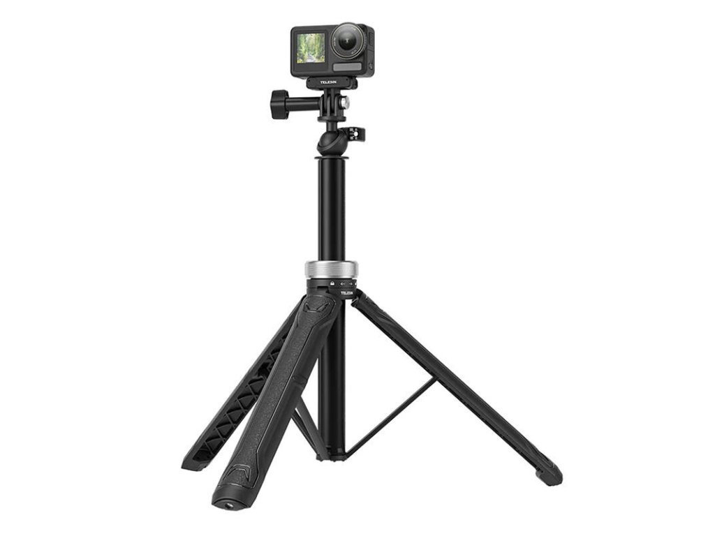 Vytvárajte originálne zábery z rôznych perspektív. Univerzálna selfie tyč Telesin S1-TSS-01 sa dá roztiahnuť na dĺžku približne 1,5 metra a vďaka vstavanému guľovému kĺbu umožňuje umiestniť kameru, ktorá je na nej namontovaná, do ľubovoľného uhla. Slúži tiež ako statív. Príslušenstvo sa veľmi ľahko prepravuje, váži iba 322 gramov a v zloženom stave zaberá tak málo miesta, že sa ľahko zmestí do tašky alebo batohu. Vyniká tiež svojou širokou kompatibilitou, vďaka čomu je perfektná pre väčšinu akčných kamier.